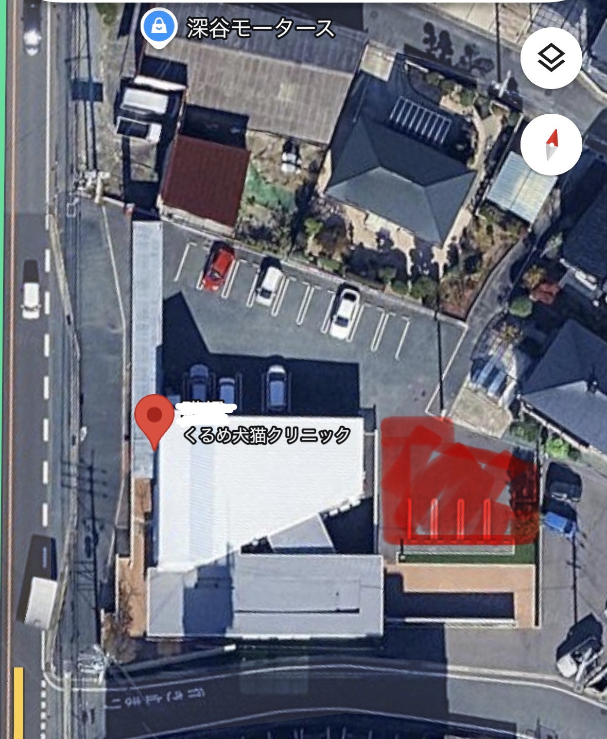 建物奥のドッグパークの前の駐車場(写真赤線部分)