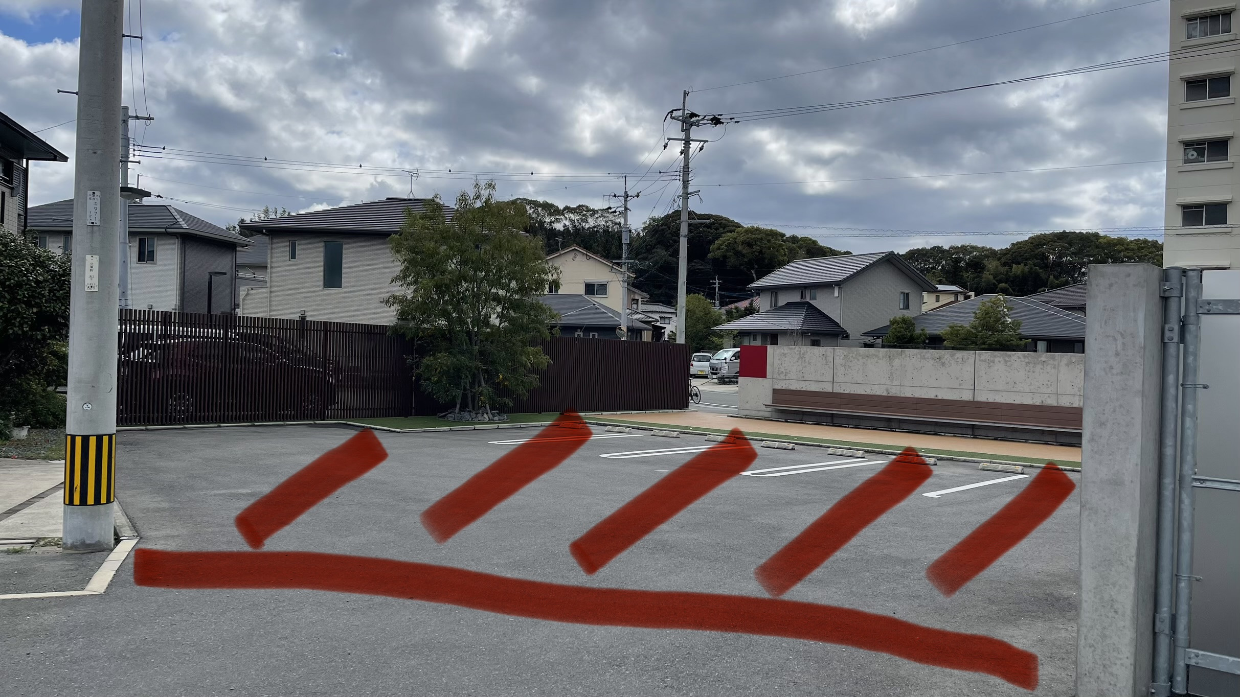 工事に伴い写真の部分の駐車場スペースが使用できなくなります。